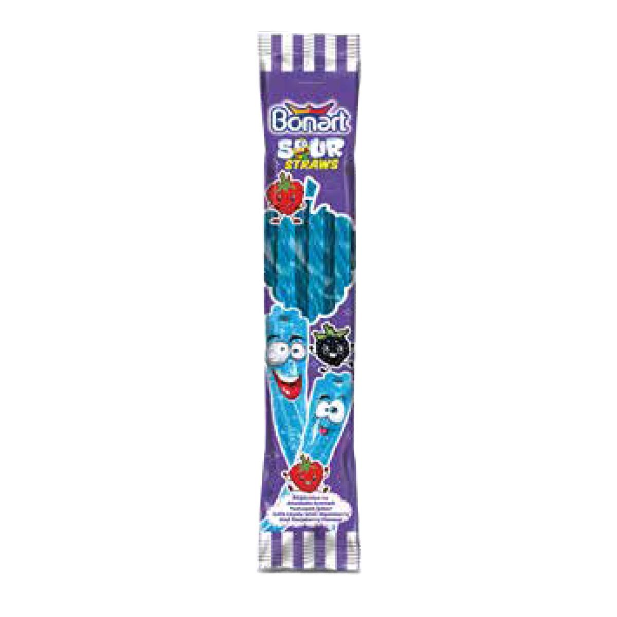 Bonart Sour Straws Raspberry & Blackberry 30g 192 pcs/ Case (24x8) (Bag) (Licorice)