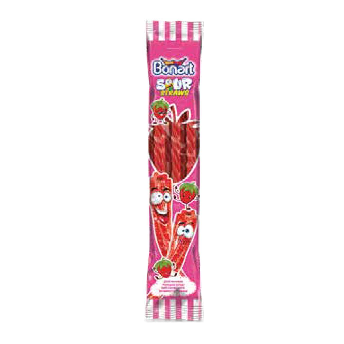 Bonart Sour Straws Strawberry 30g 192 pcs/ Case (24x8) (Bag) (Licorice)